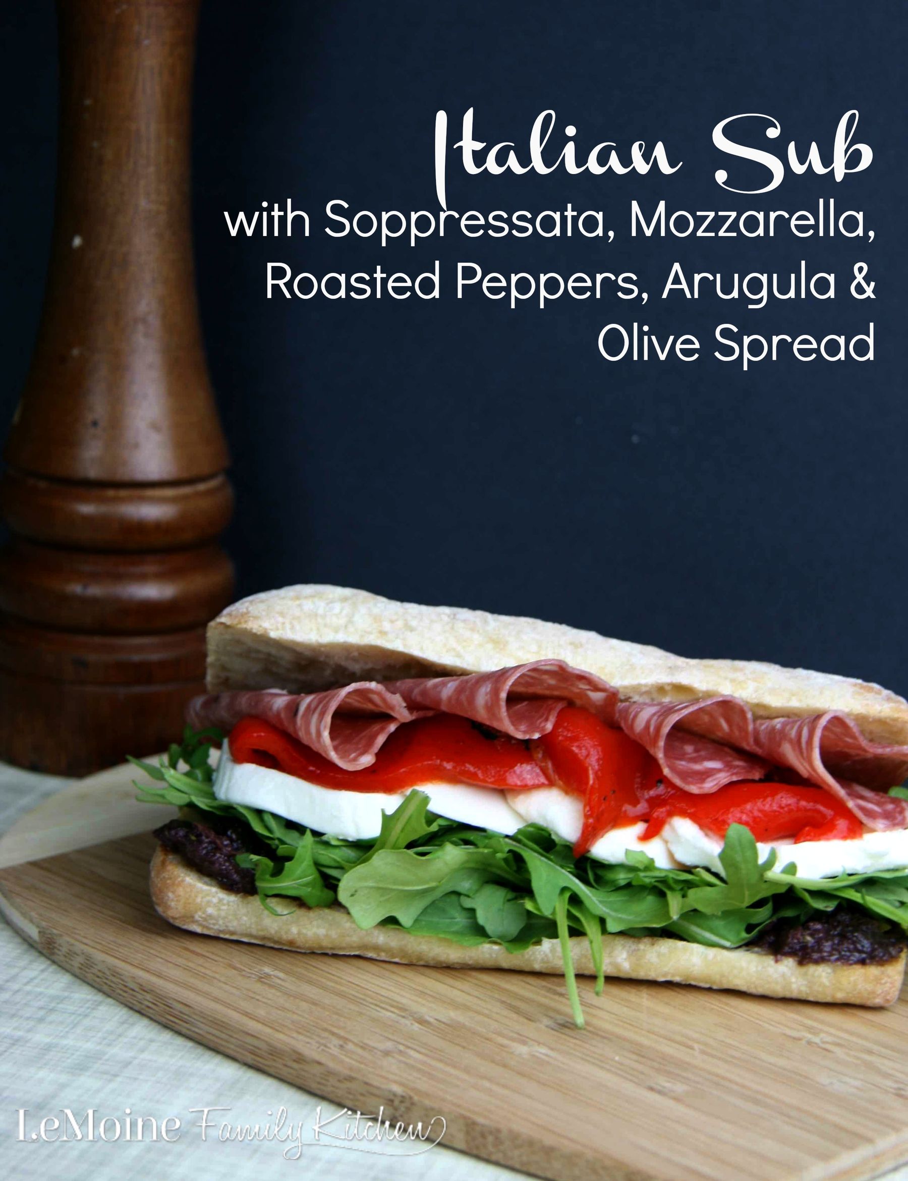 Italian Sub with Soppressata, Mozzarella, Roasted Peppers, Arugula & Olive Spread