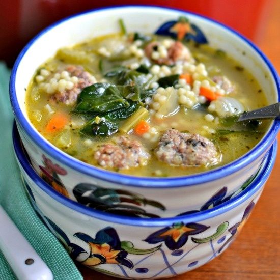 Italian Wedding Soup is made with delicious pork and beef meatballs, onions, carrots, celery, garlic, spinach and pasta in a deliciously seasoned broth.