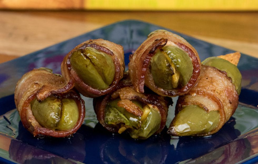 A way to turn your beloved childhood snacks into cute (and still convenient) little hor d’oeuvres. The process is straightforward and requires only three ingredients, including the Totino’s Stuffed Nachos—they’re petite yet plump enough to fit snugly inside of a jalapeno, and that queso filling combined with the spicy pepper and savory bacon is gonna blow ya gosh-dang mind. Also doesn’t hurt that most of the method allows you to just sit back and wait while the magic takes place in the oven.