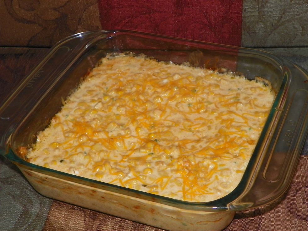 Spray 8x8 baking dish with non-stick spray. Pour mixed ingredients into baking dish. sprinkle with bread crumbs if desired. Bake at 350 for 45 minutes to 1 hour. Stir and serve.
