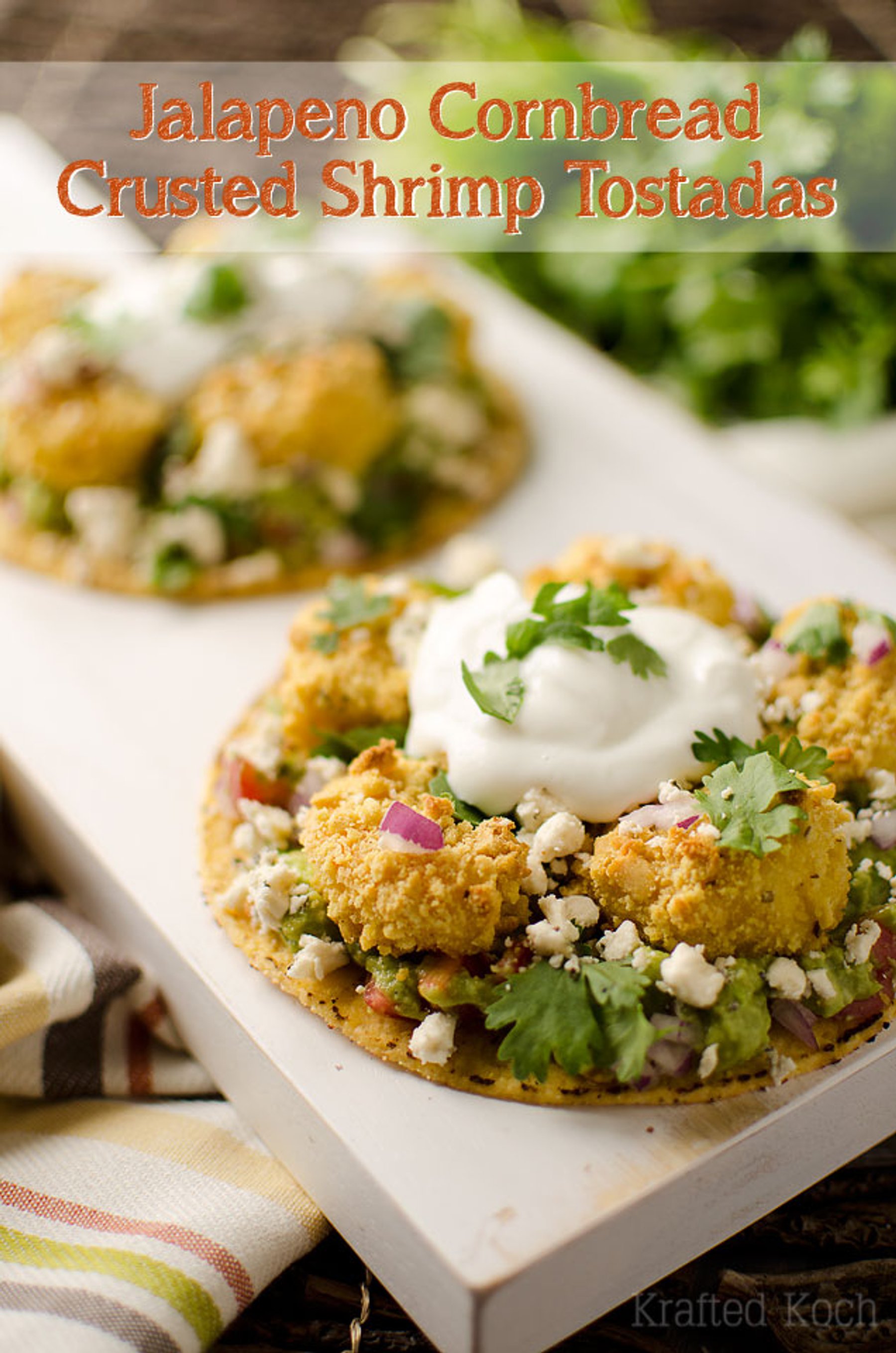 Jalapeno Cornbread Crusted Shrimp Tostadas