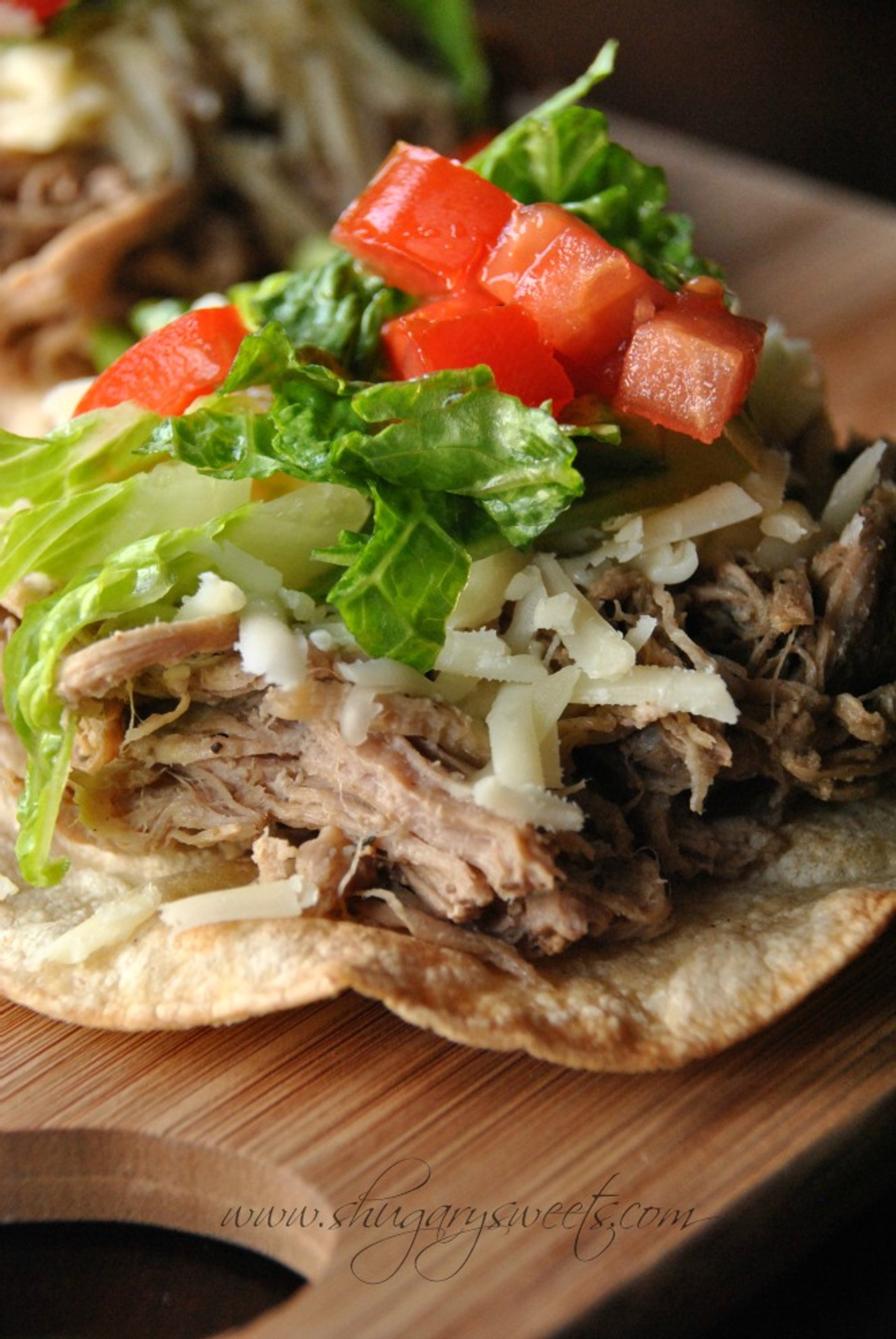 Slow Cooker Jamaican Jerk Pulled Pork on Baked Tostadas