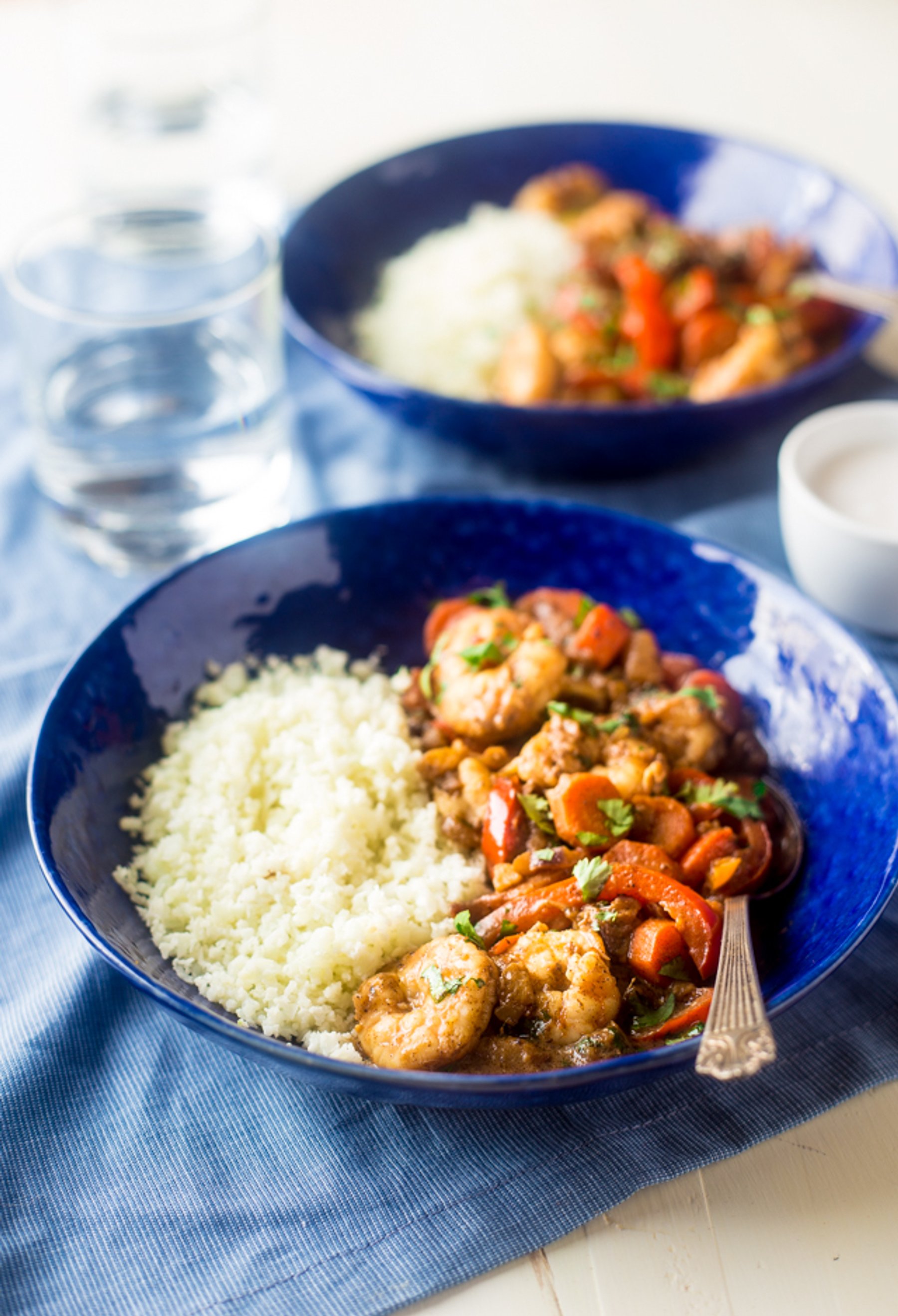 This creamy Jerk Shrimp Stew uses coconut milk, pineapples and bold flavors for a healthy, weeknight meal that is paleo friendly and whole 30 compliant!