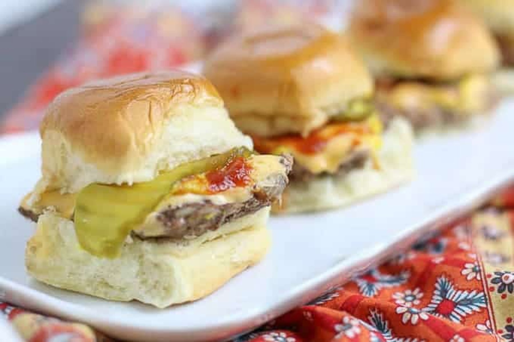 This Juicy Oven Baked Burger Sliders Recipe was inspired by the famous Krystle & White Castle Burgers. These cheesy, flavorful little burgers are easy to make in big batches and disappear in minutes!