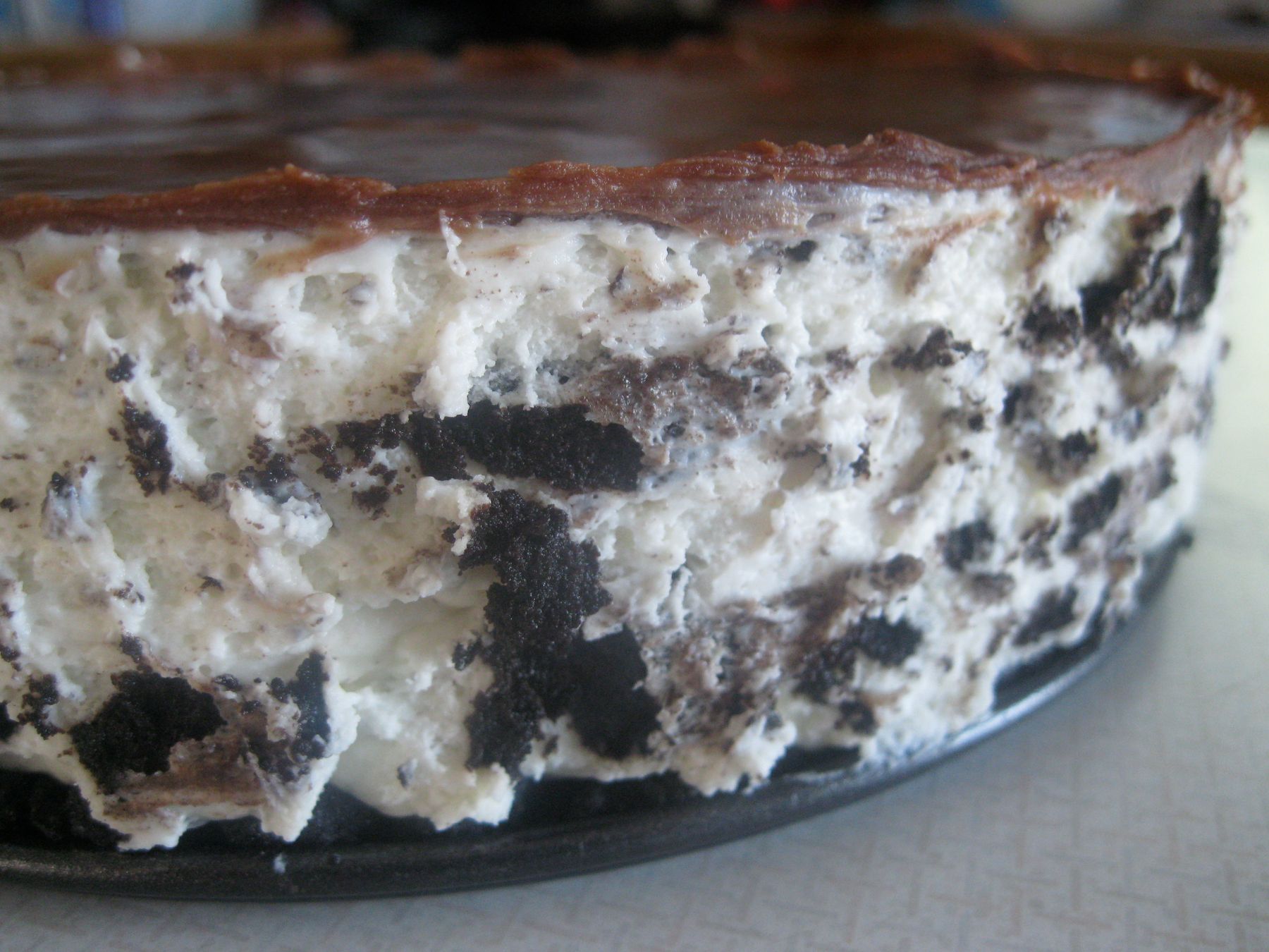 Oreo crust, rich cheesecake filling with chopped Oreo cookies, topped with a smooth chocolate ganache! I was introduced to this easy recipe by a young lady by the name of Julianne. I love it so much that I eat it every year for my birthday!