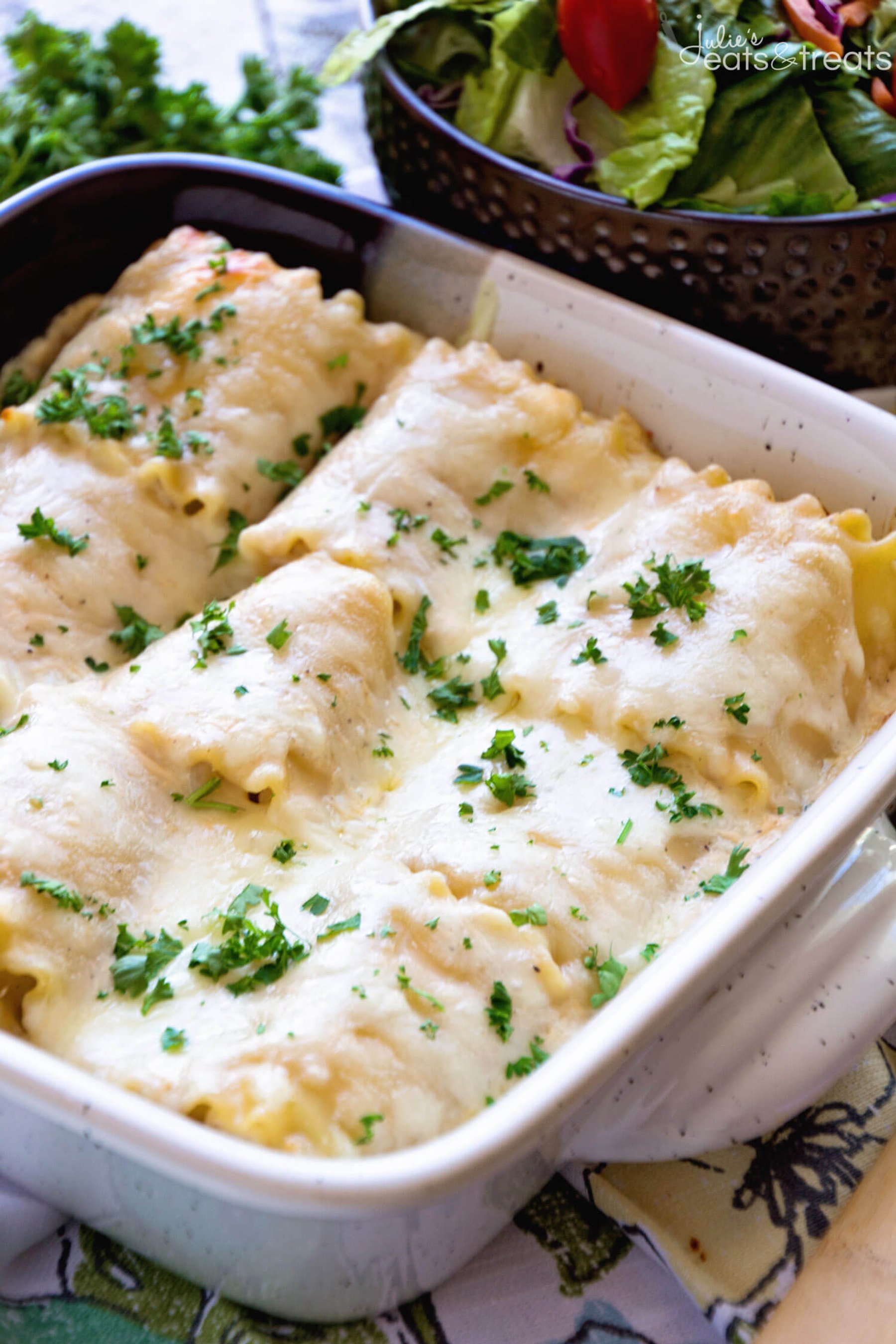 Chicken Alfredo Rollups ~ Creamy and Delicious! Lasagna Noodles Stuffed with Chicken, Cheese and Garlic Alfredo Make for a Quick and Delicious Dinner!