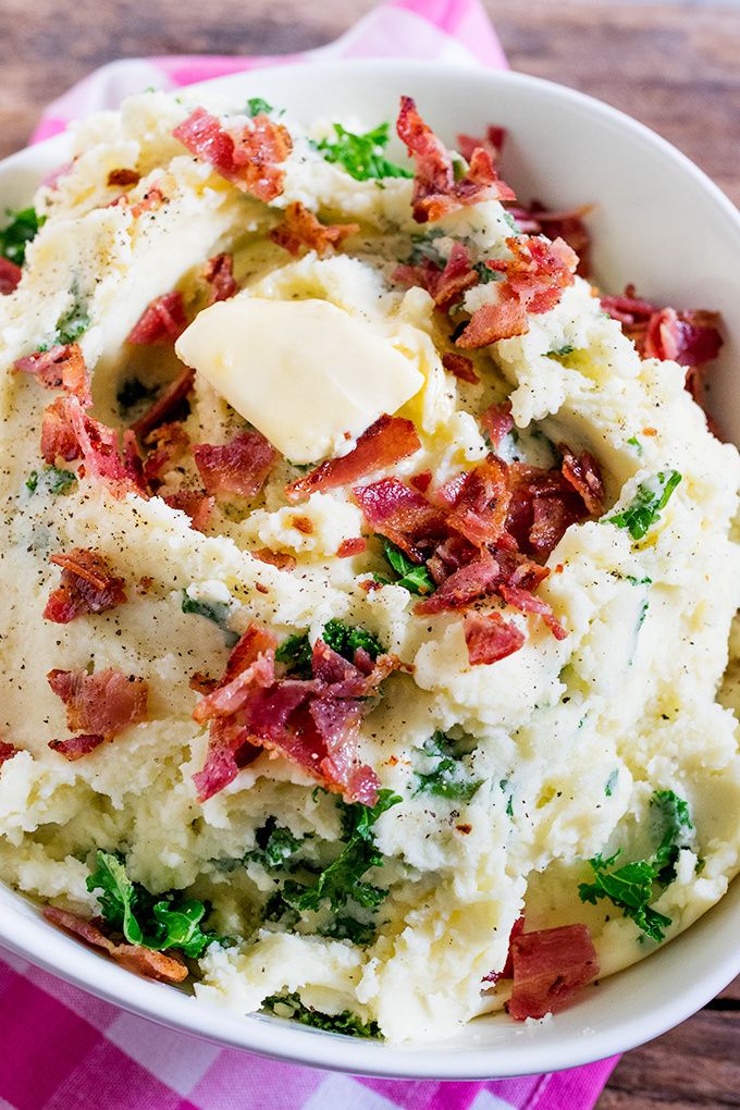 Side Dishes Kale and Bacon Mashed Potatoes Nicky CorbishleyMarch 14, 2019 188 Kitchen SanctuaryButtery Kale and Bacon Mashed Potatoes makes a great side dish – or even a meal in itself!Kale and Bacon Mashed PotatoesSee the full directions on my site