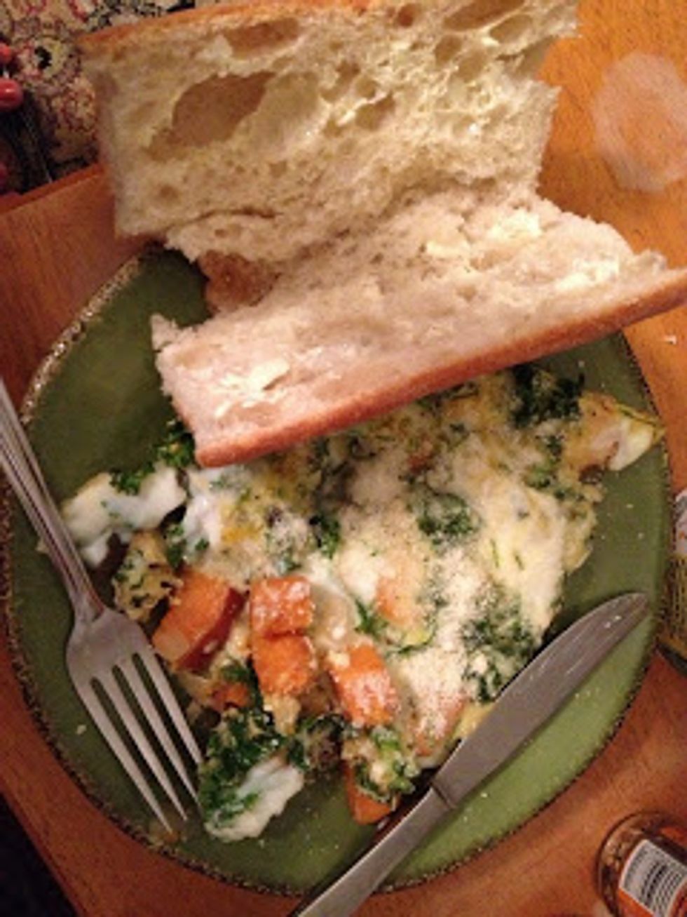 Preheat oven to 350 F. Heat butter in cast iron skillet over medium heat. Add chili flakes and onion, toss to coat with butter. Add in the garlic paste (if using fresh garlic, wait until onions have cooked...