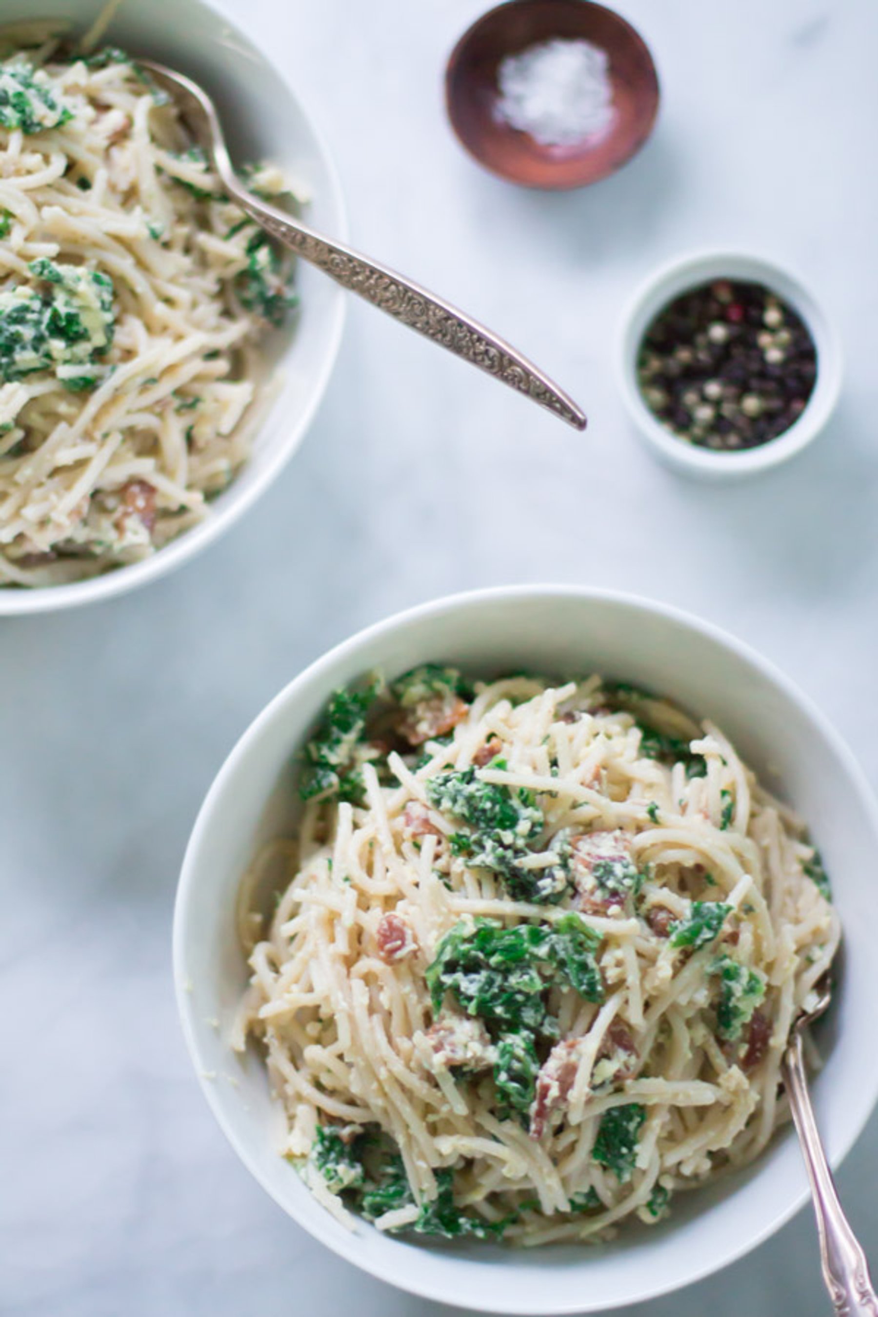 Make this classic Italian Kale Carbonara recipe packed with eggs, cheese, bacon and kale and you will see how rich and flavourful this meal is. Enjoy!