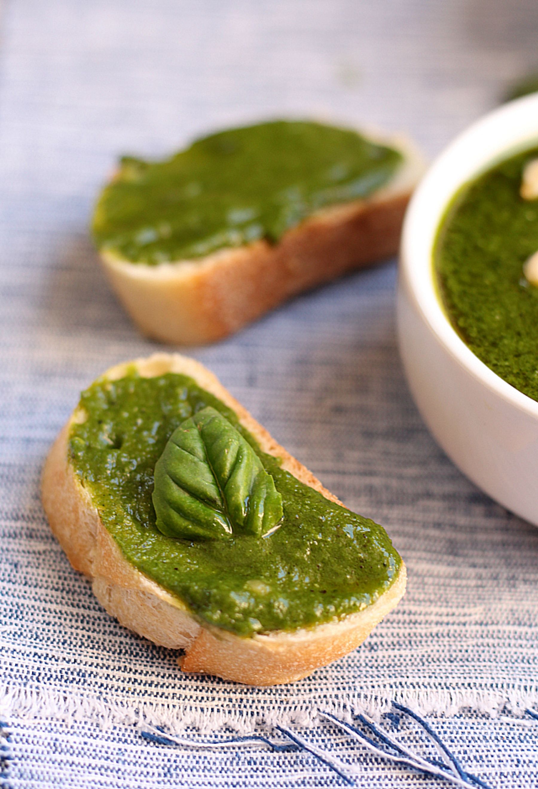 Easiest green Italian oil-and-herb sauce made with kale, basil leaves, pine nuts, salt, garlic, Parmigiano-Reggiano (Parmesan cheese) and olive oil. Use this kale pesto as a spread for bread loafs, salad dressing or tossed with brown rice pasta and tomatoes.