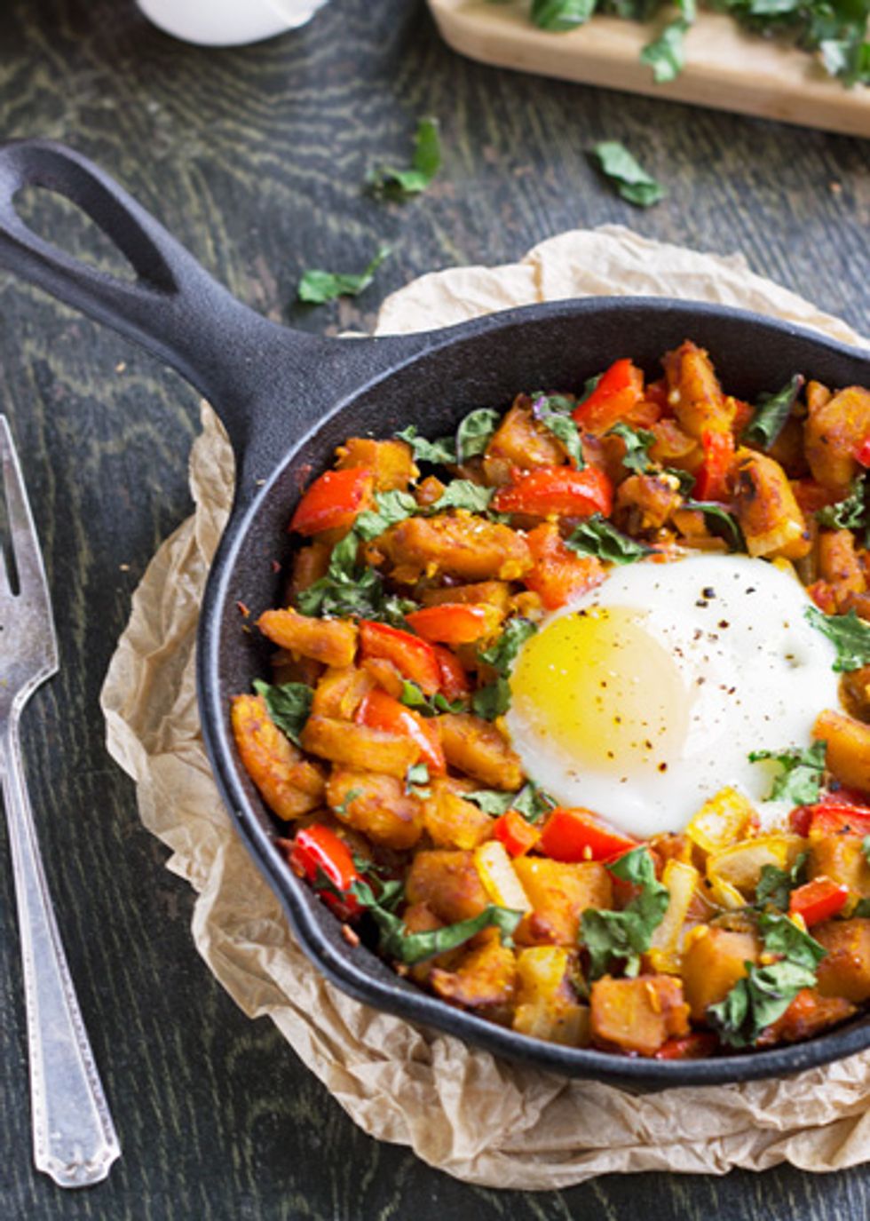 This Breakfast hash with Kale, squash, and peppers come together with a fried egg to make a quick, delicious and healthy breakfast.
