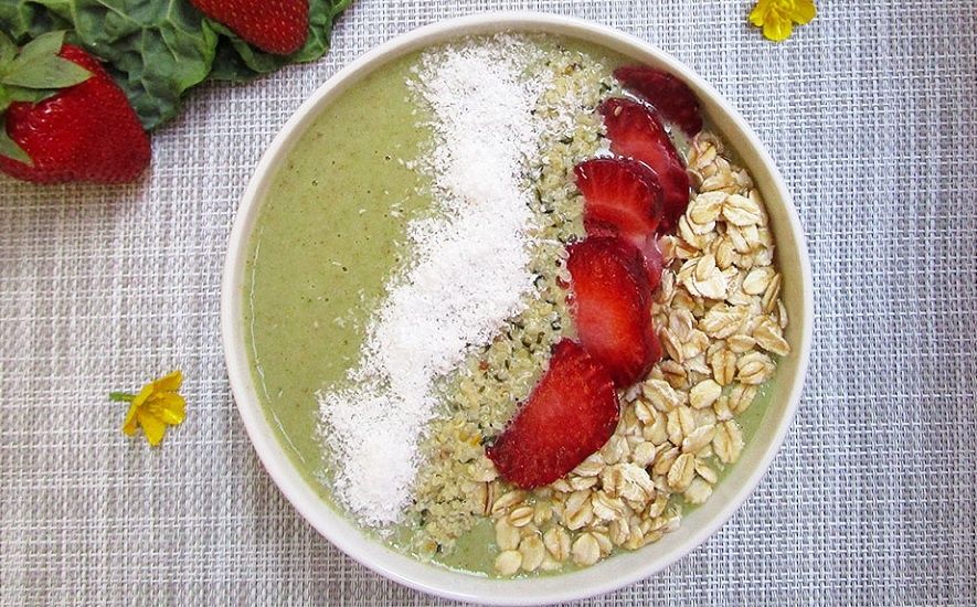 Kale Strawberry Green Smoothie Bowl is delicious detoxifying breakfast.