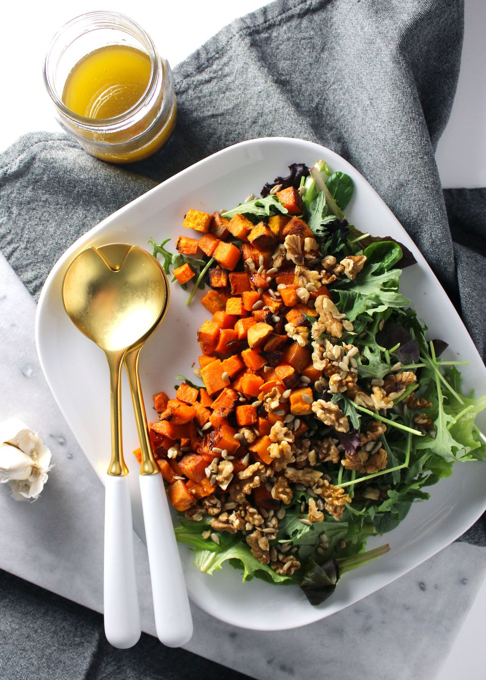 Kale & Walnut Salad with Roasted Sweet Potatoes