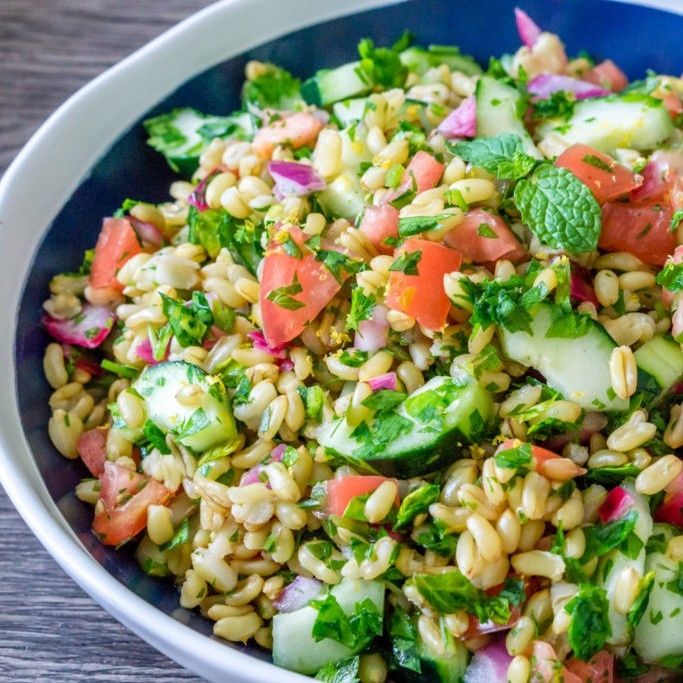Need a new dish to get out of that recipe rut? Make this lemony Kamut Tabbouleh Salad with fresh cucumber, tomatoes, & lots of fresh herbs.