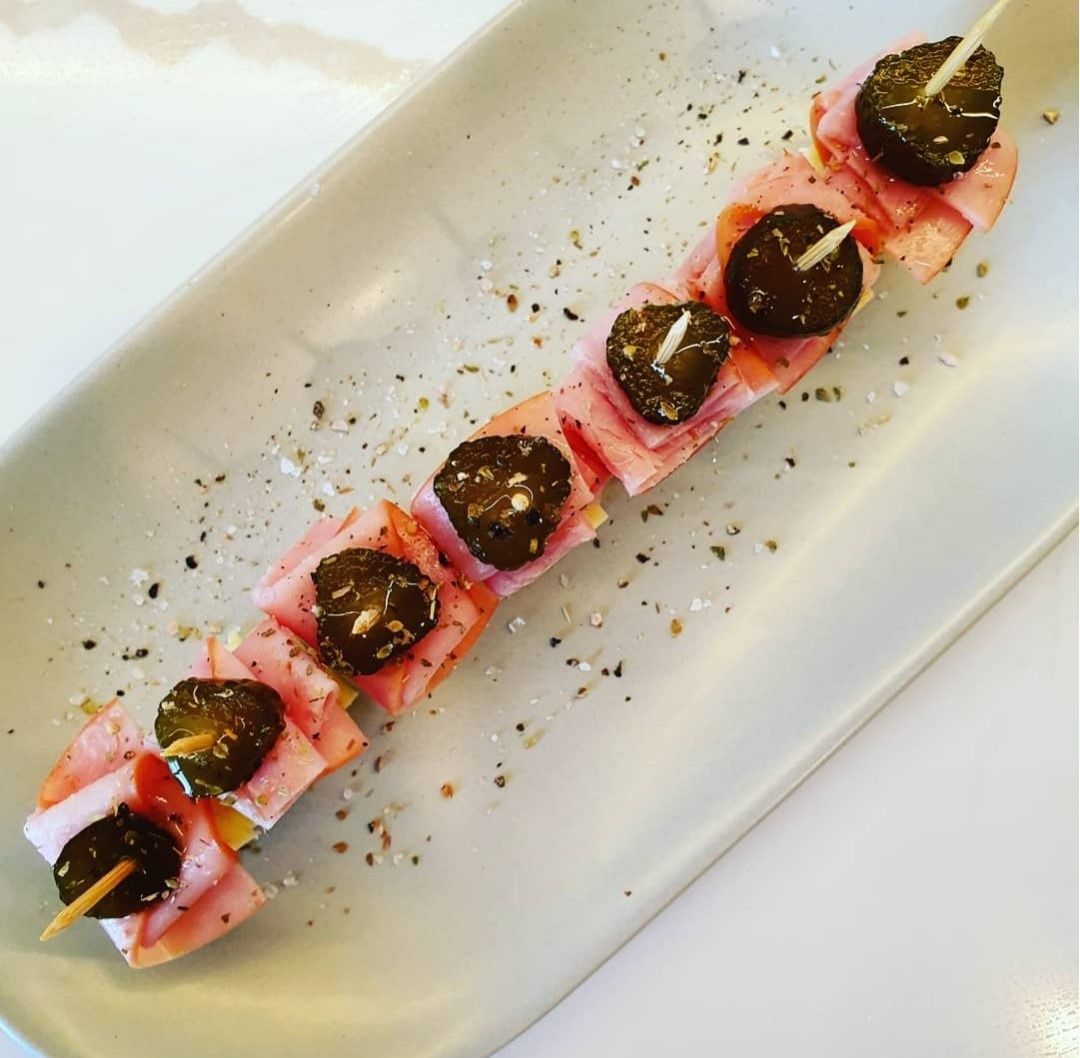 Let's say you fancy something to nibble on and you only have 3 ingredients, or, some friends drop in for drinks and you only have 3 ingredients, with these three ingredients being doubled smoked ham, cheddar cheese and gherkins? Well we have two ways you can create a dish with just these three ingredients.