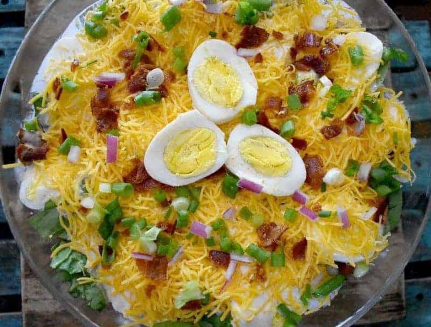 A keto layered salad it's a low carb (seven layer salad) recipe. Today, I hope to bring back a little Americana with this simple classic recipe that's been made over. It’s a recipe for keto layered salad. Not familiar with layered salads? How about the Seven Layer Salad? No? That’s