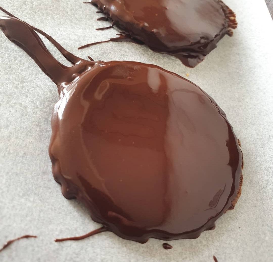 If there were ever a packet of biscuits that I could demolish, then it would definitely have to be a 'Mint Slice'! They are a biscuit, with a white creme layer and then covered in dark chocolate, they are heaven. Thanks to this great 'Thin Mint's' recipe I was able to find, we were able to enjoy a good ol' mint slice again! I changed the thin mint's recipe slightly to be more mint slice inspired, by exchanging Cocoa powder for Coconut flour in order to keep the biscuit light and added some peppermint extract to the biscuit base to really give you that mint sensation.