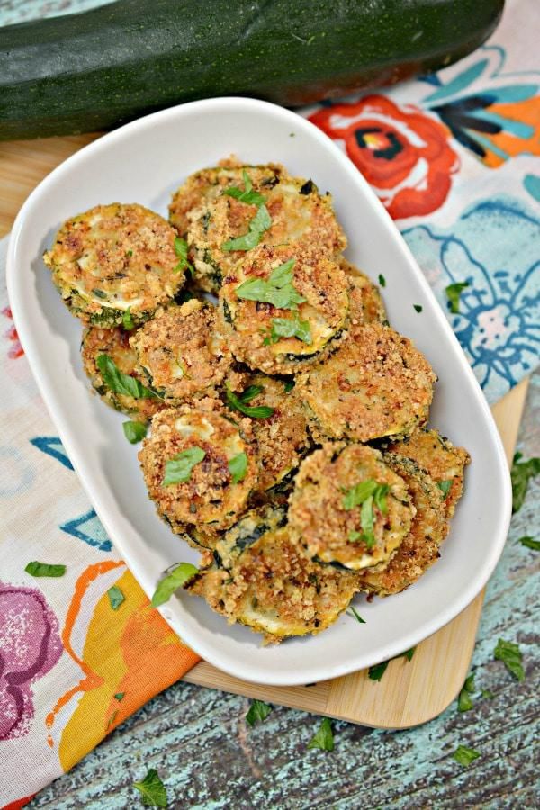 Keto Parmesan Zucchini Chips are a great snack or side dish for the low carb lifestyle. These delicious zucchini chips are also a great way to use up those excess zucchini from the garden during growing season! These Keto Parmesan Zucchini Chips are very keto friendly. The zucchini bites are coated with pork rind crumbs instead of regular bread crumbs. Pork rinds are a staple on the keto diet and can be crushed to use as breading. This easy recipe has some very basic ingredients that most keto eaters will have on hand.