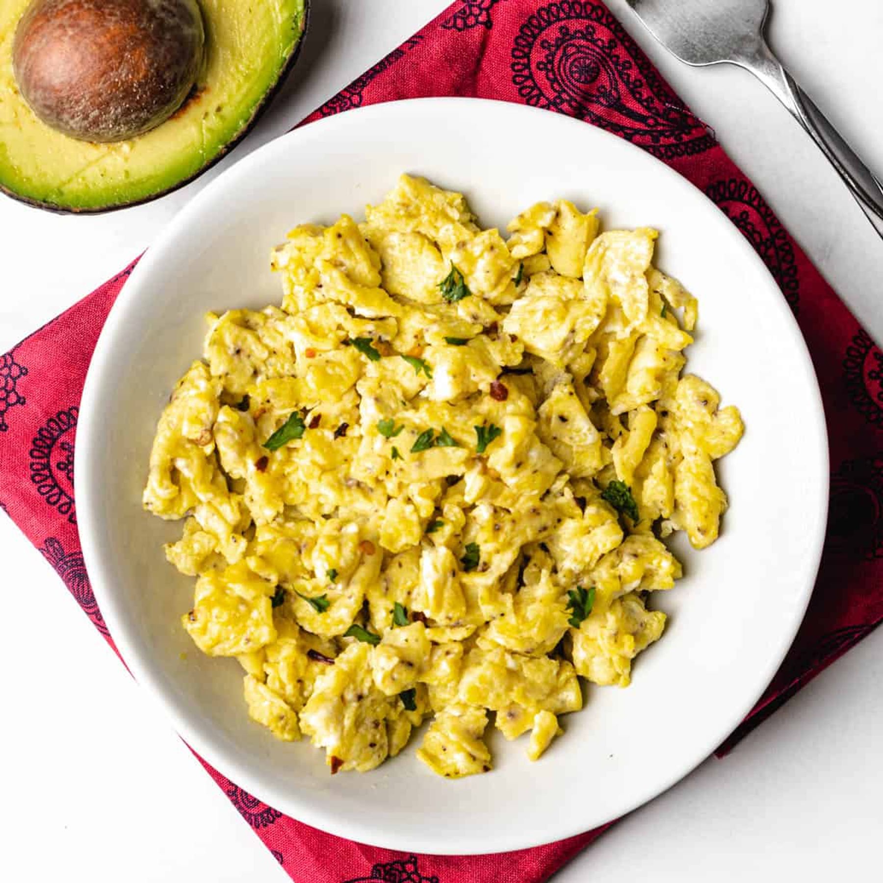 Make this easy keto scrambled eggs for breakfast, lunch, or dinner!