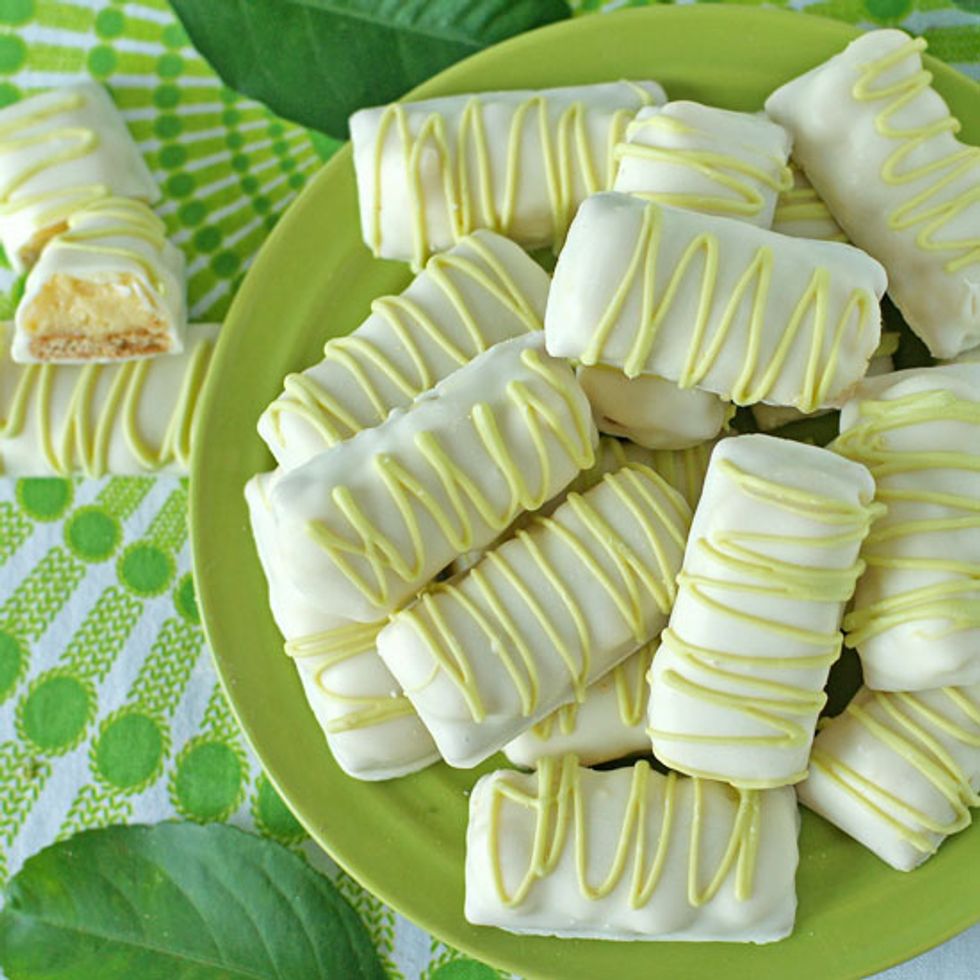 Key Lime Pie filling on graham cracker and dipped in white chocolate. Easy as 1-2-3! These mini key lime pie bars are sure to be a hit a your next party! Also great for dessert buffets.