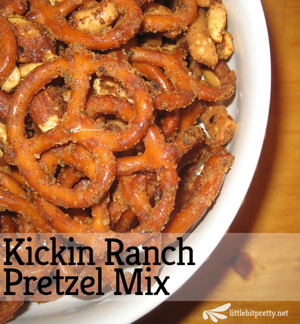 Then, in a large bowl, mix together the pretzels, almonds, peanuts and sesame sticks. Pour the Ranch mixture all over the...