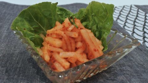 1. Make small cut in the core of the chinese leaf with a knife and cut it by hand. Cut the chinese leaf into 1/4.
