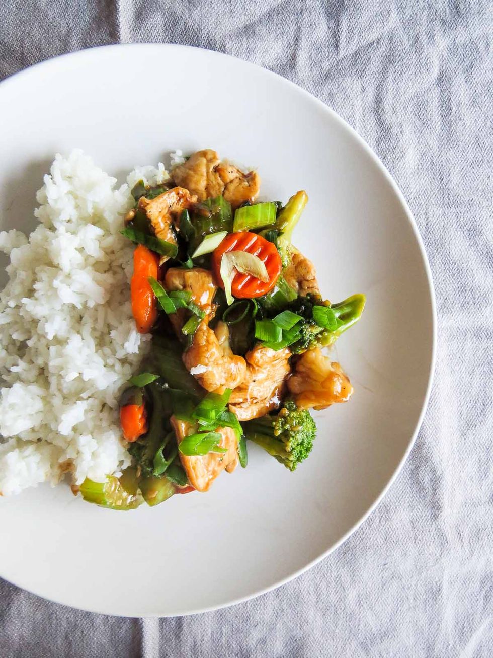 Kitchen Sink Chinese Stir Fry to the RESCUE! Got fresh and frozen vegetables hanging around that you don’t know what to do with? This recipe has got your back and is perfect for two, a couple or many!