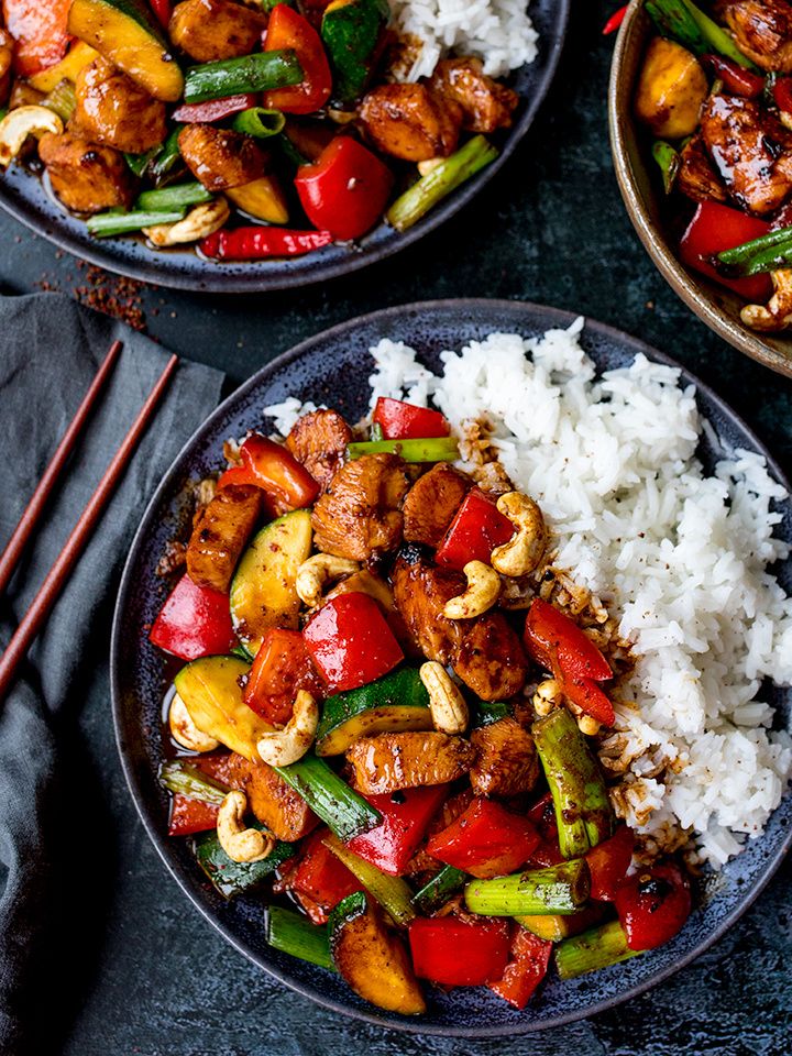 This Copycat Panda Express Kung Pao Chicken is a deliciously spicy stir fry with lots of chunky veggies and chicken, coated in a rich, tasty homemade sauce!