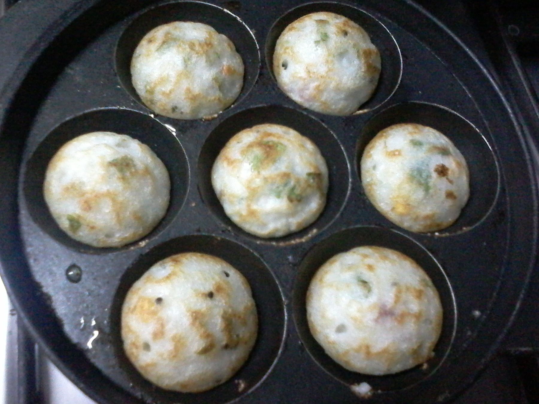 Turn them over using a spoon and drizzle a little more oil and continue to cook for three to four minutes or until both the sides are evenly cooked. Prepare more paniyarams similarly . Step 5