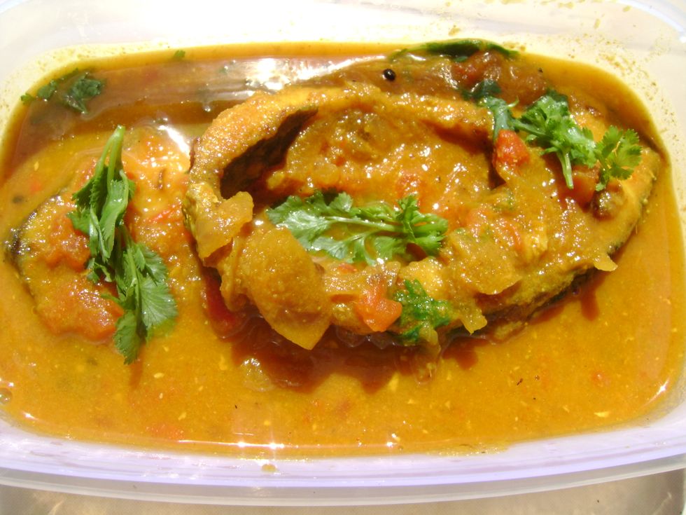 Method:- marinate the fish with a pinch of salt and turmeric powder. Keep aside for 5 minutes. Take a non stick pan, put some mustard oil and fry the fish for some time both the sides. Keep aside. In another nonstick pan again put some mustard oil, add chopped green chilly and onion, saute for 2 to 3 minutes, add ginger garlic paste, fry till it leaves the oil, add tomato and add a little sugar to sweat the tomato, add cumin powder,coriander powder, turmeric powder, and fry for 2 minutes, add the curd mix it well, add 1 cup of water, add salt to taste let it boil and add the fish simmer for sometime in a very low flame, garnish it with fresh coriander, serve hot with steamed rice.