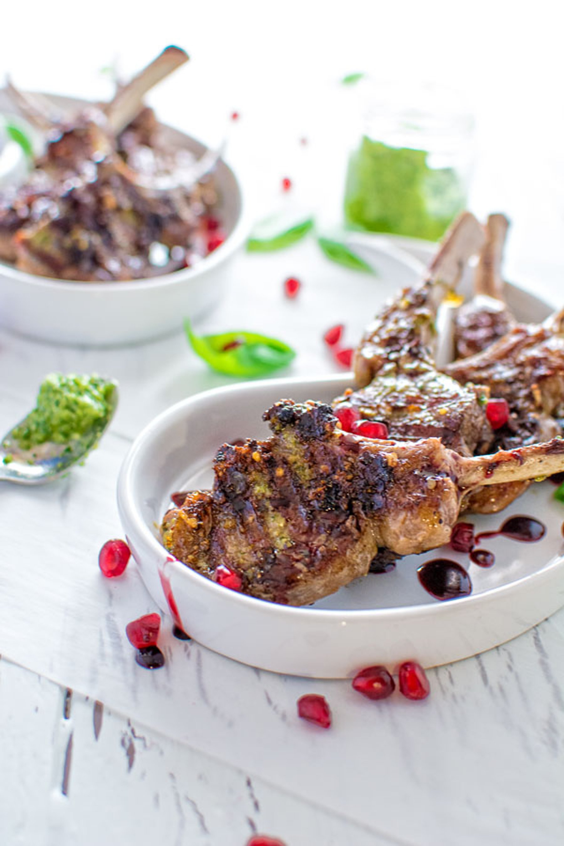 Just a few simple ingredients make this delicious lamb chops! All you need is some pesto, pomegranate, and balsamic vinegar. Yummy!