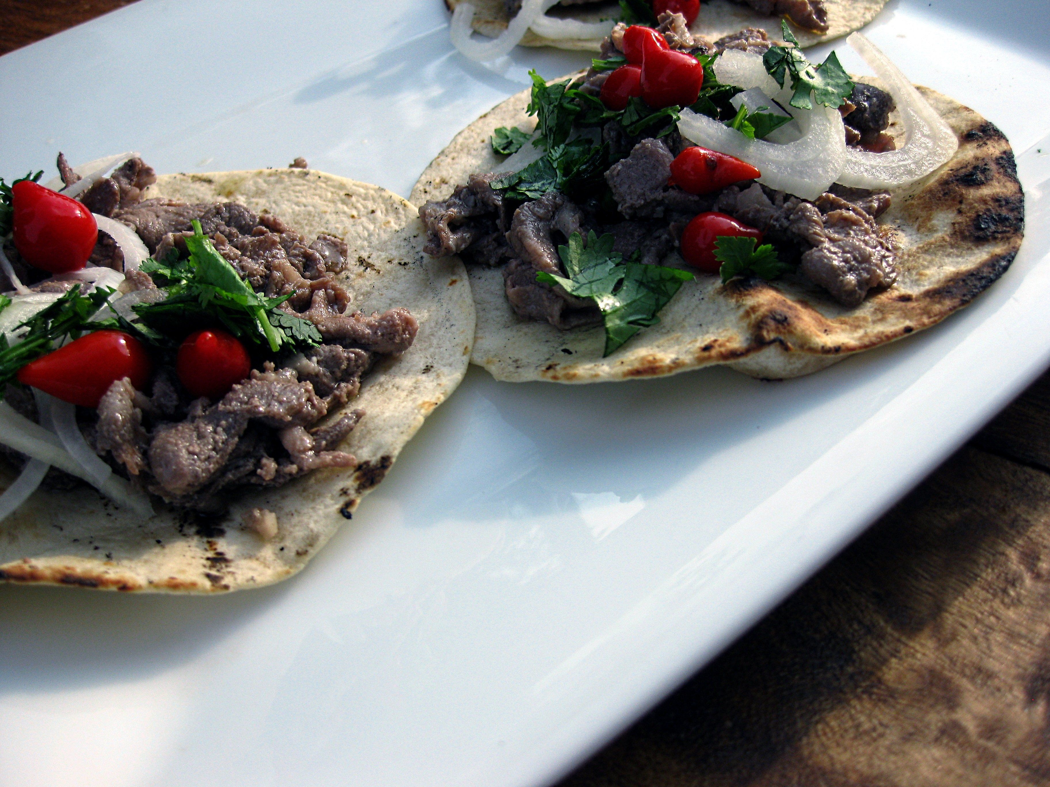 Shaved marinated lamb combined with cilantro, sweety drop peppers, and onion in a soft flour tortilla.