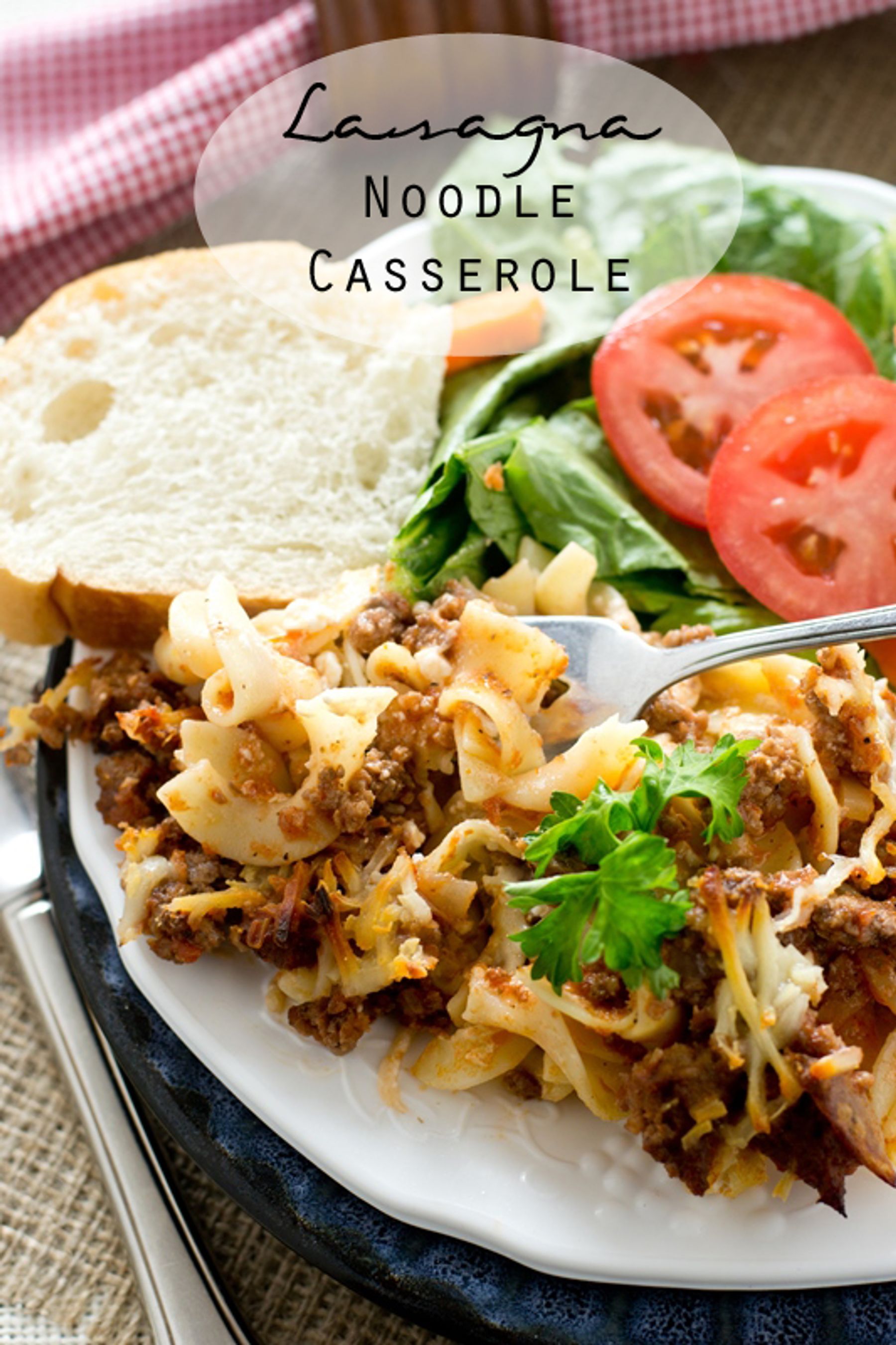 A comforting, layered casserole of noodles, beef, cheese and spaghetti sauce. This Lasagna Noodle Casserole is well-loved and can easily be doubled to feed a crowd.