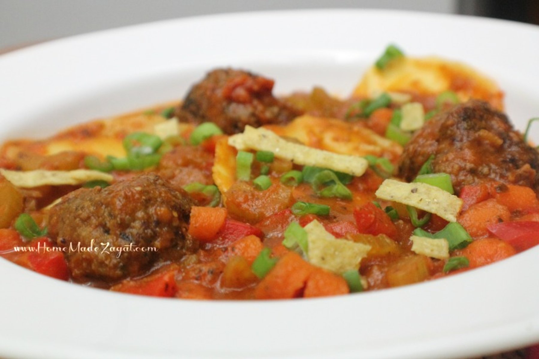 Optional garnishes: tortilla chips, ricotta chee