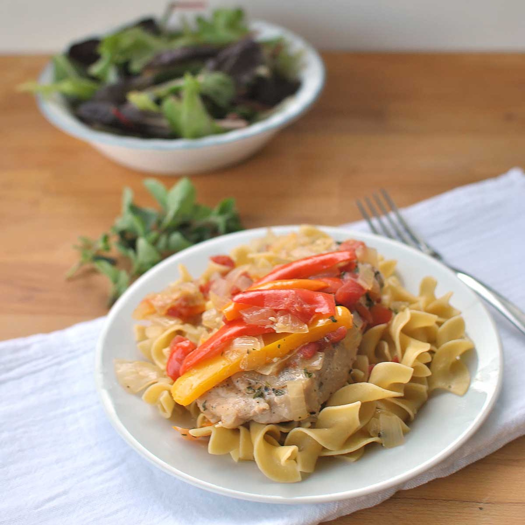 Lean Pork and Sweet Peppers on Noodles is the perfect healthy weeknight dinner recipe that\\\'s on the table in 30 minutes or less.