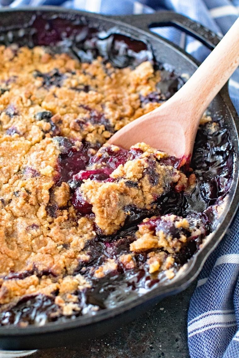 Delicious Cast Iron Crisp that you make on the grill! This Lemon Blueberry Crisp is the perfect ending to your BBQ. Packed full of juicy blueberries with a crust and topping made of gingersnap cookies for an amazing flavor. Then you can either grill it or bake it in the oven for the perfect amount of lemon, grilled to perfection.