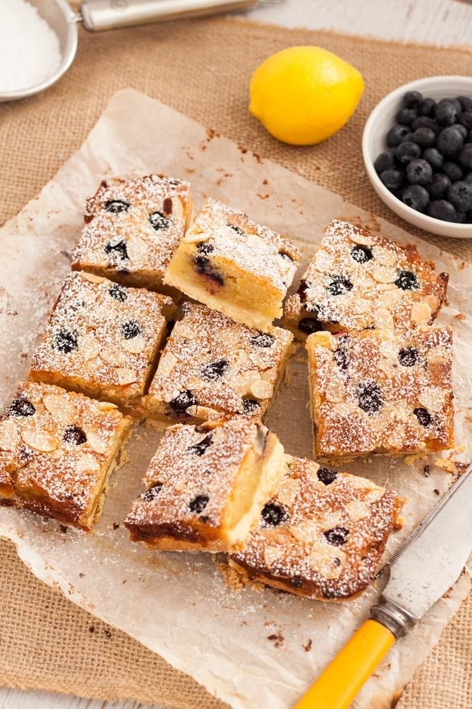 These Lemon Blueberry Frangipane Shortbread Bars have the perfect crunchy shortbread base, topped with a frangipane, lemon & blueberries.