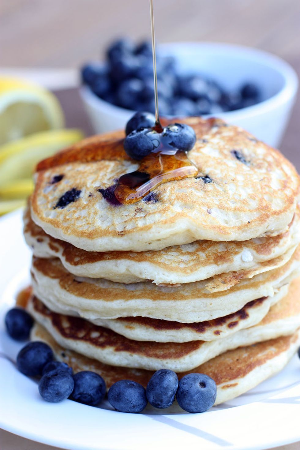 Perfectly sweet and fluffy lemon, blueberry pancakes, made from scratch!