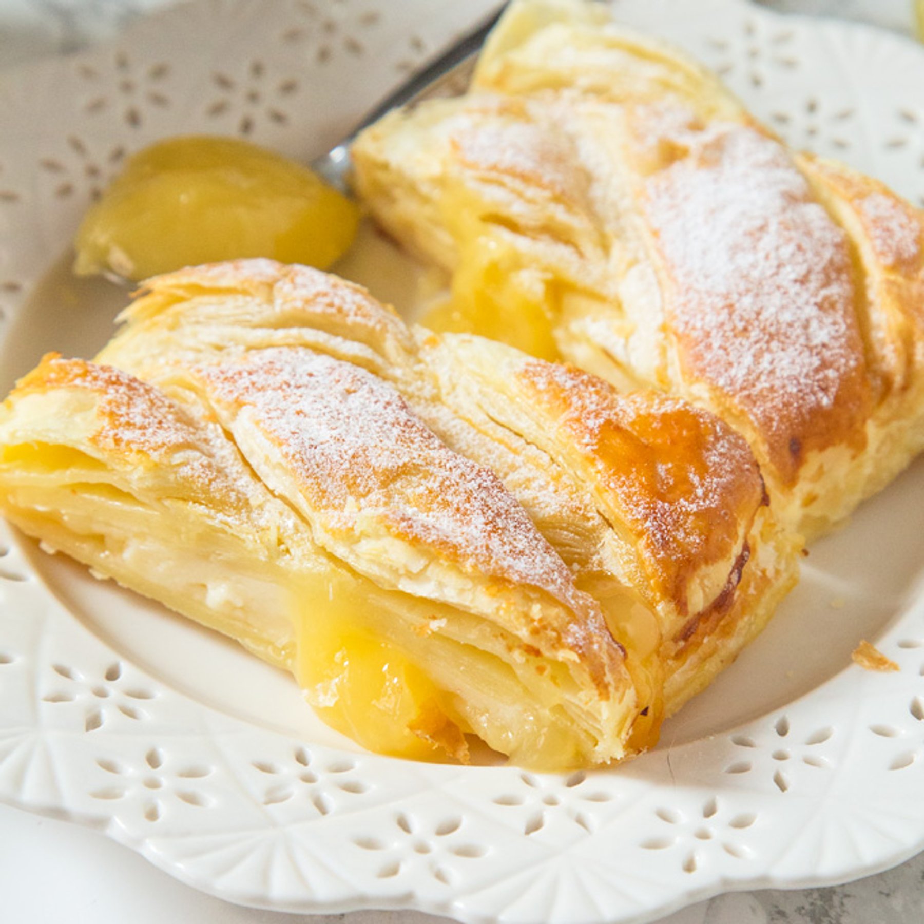 Flaky pastry filled with lemon curd and cream cheese to create a sweet, yet tart Puff Pastry Braid everyone will love!