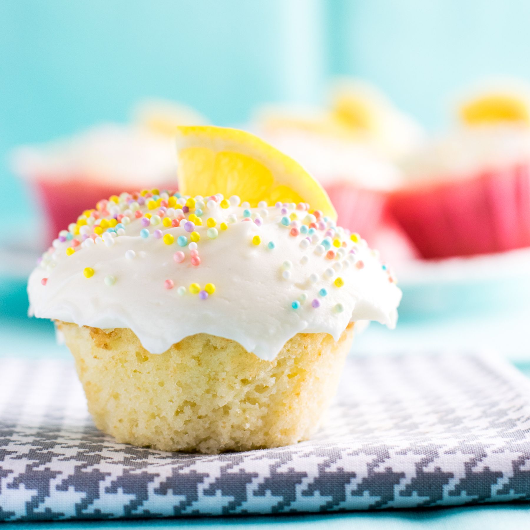 A tender, moist lemon cupcake topped with a light and tangy lemon cream cheese frosting.
