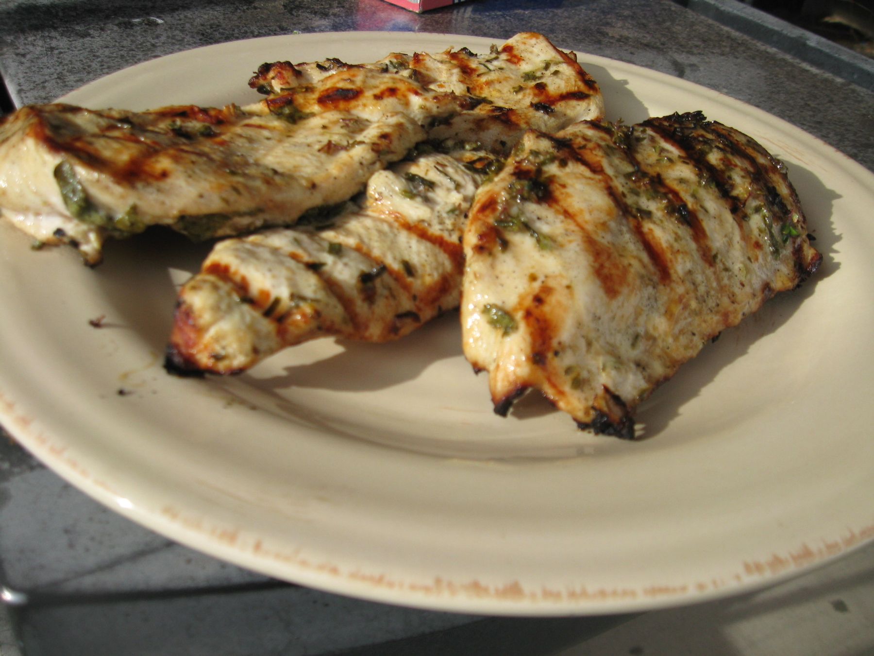 The flavors of lemon and fresh herbs on this moist grilled chicken will knock your socks off-- in a good way!