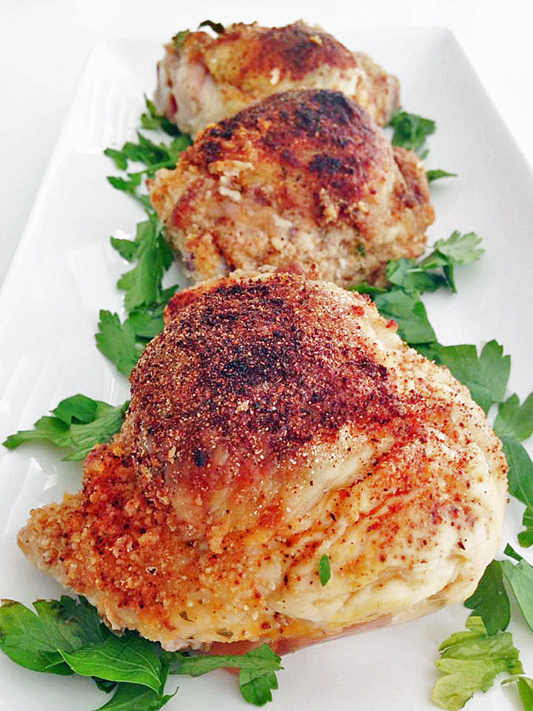 Juicy chicken thighs stuffed with bread crumbs, lemon, herbs and seasoning.