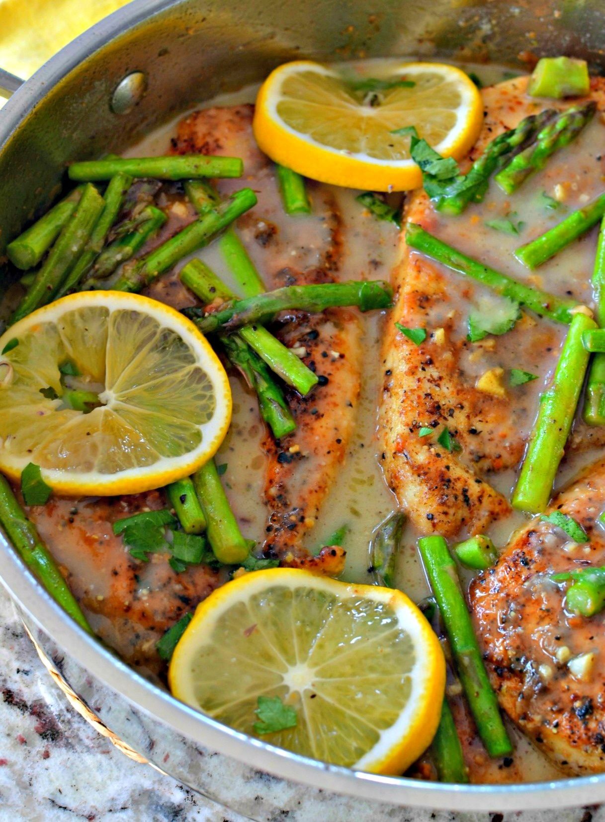 Lemon Pepper Chicken is an easy weeknight meal that comes together quickly in one skillet. It combines lemon pepper breaded chicken and asparagus in a light lemon sauce made with a splash of real lemon juice and honey. Serve with Lemon Rice or by itself for a low carb meal.