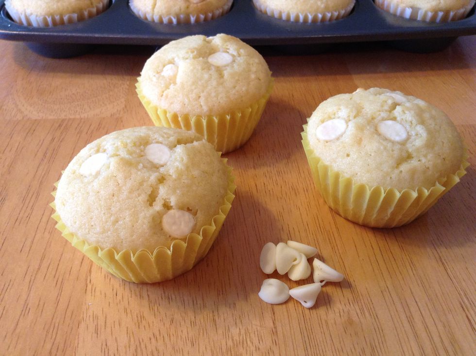 These muffins have a burst of lemon flavor, which is nicely complemented by the white chocolate chips. They would be a perfect breakfast addition anytime of the year.