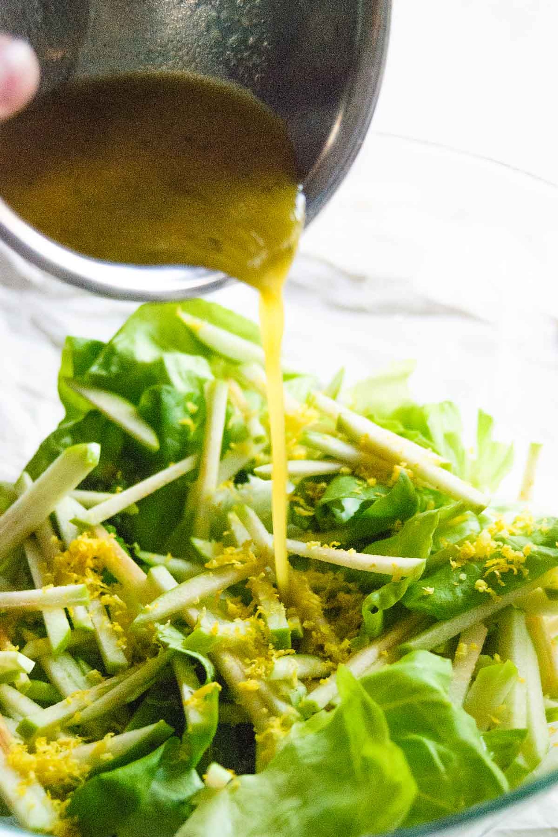 In a large bowl toss together: lettuce, apple and lemon zest.
