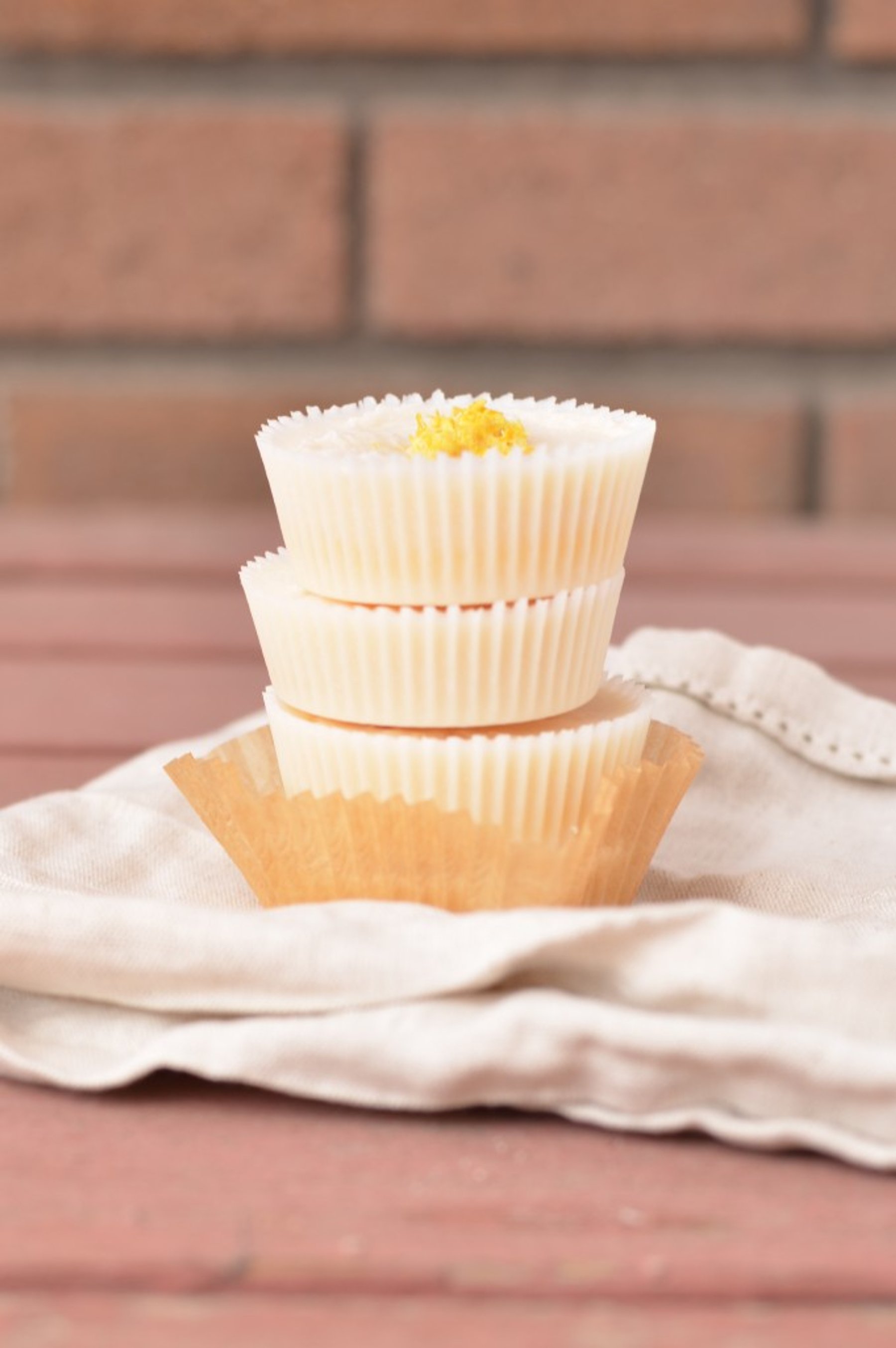 On a baking sheet, lay out 30 mini baking cups (I recommend double-layering them for sturdiness, or using silicone baking cups). Spoon the batter into each cup, then place in the freezer to set for 30 minutes, or until solid.