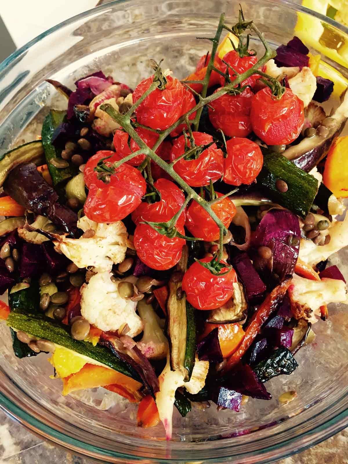 This lentil and roast vegetables salad is a simplified and equally delicious recipe, adding a flavorful and nutty taste to any meat or fish main dish. Although it can serve as a side dish can be very easily serven on its own as a good source of vegetable protein and so many vitamins.