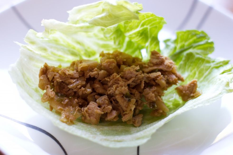 Wash and dry whole lettuce leaves to use as lettuce cups.