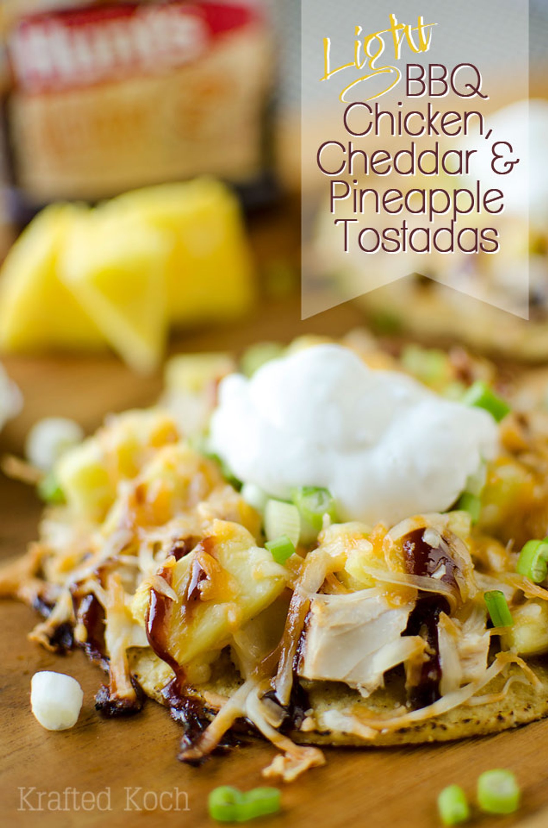 Crunchy tostadas are topped with tender chicken, juicy pineapple, zesty BBQ sauce and melted cheddar for a filling and flavorful meal.