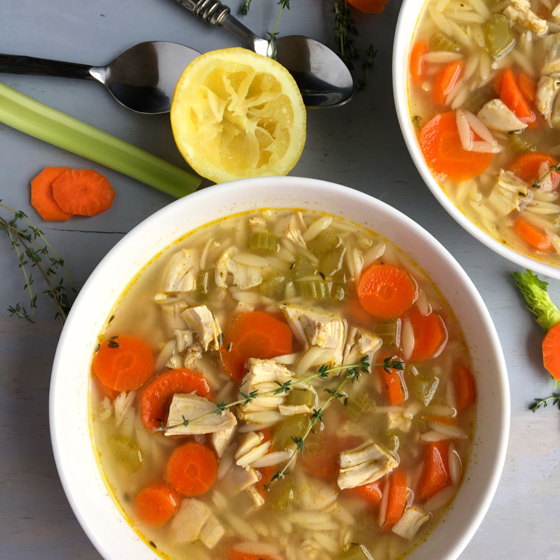 LIGHT GREEK LEMON CHICKEN ORZO SOUP